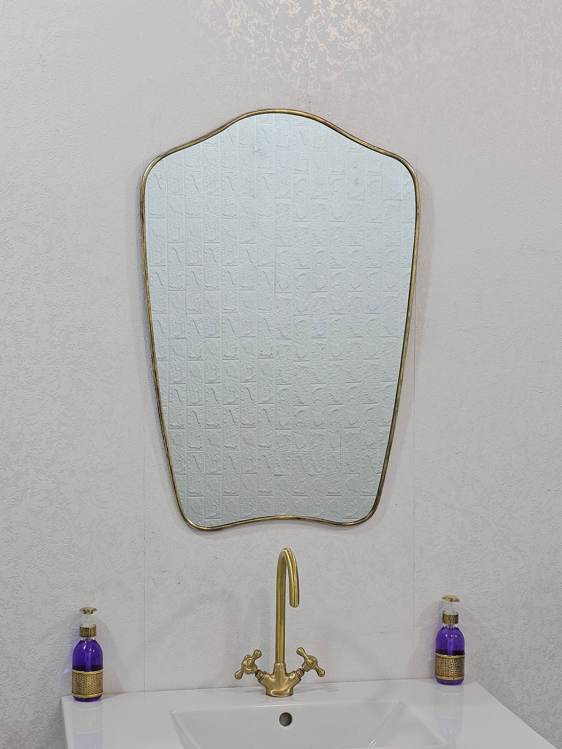 Perfect for bathrooms, living rooms, bedrooms, or entryways, this vintage-inspired mirror adds a touch of timeless elegance and charm to any space. The antique brass finish gives it a luxurious, aged look that seamlessly complements modern, Art Deco, or vintage interiors.